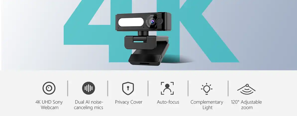 Ultra UHD 4K & Sony SensorDual AI Noise-Canceling MicsAdjustable LED Fill Light with Customizable Color Temperature