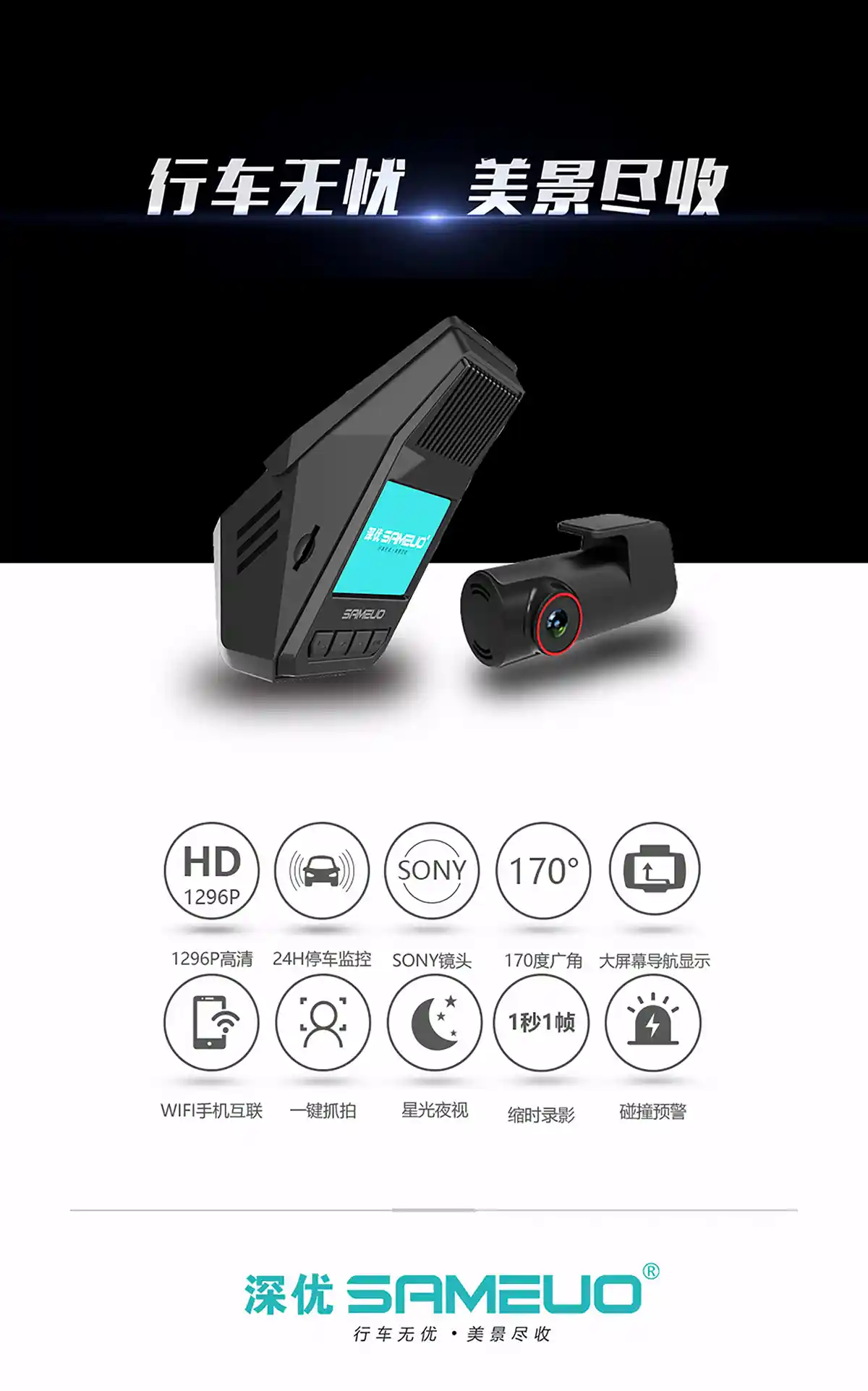 The SAMEUO U900 Dash Cam offers 24-hour parking monitoring, featuring low power consumption, battery protection, and comprehensive evidence capture.