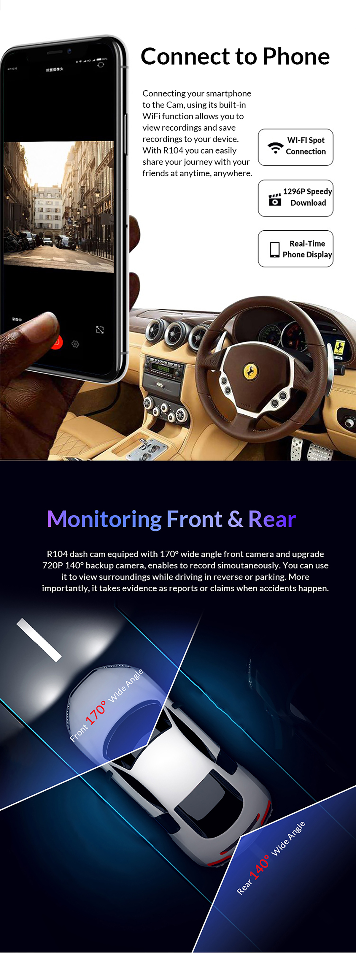 These are essential functions. It should support 24 - hour parking monitoring (powered by a step - down wire without draining the car battery), and at the same time have gravity sensors (automatically locking the video upon collision to prevent overwriting), which can effectively deal with situations such as the car being scratched while parked and malicious ,acting as an "invisible bodyguard" for the vehicle.